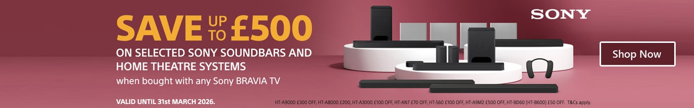 Save up to £500 on premium Dolby Atmos soundbars when purchased with ANY Sony TV.
