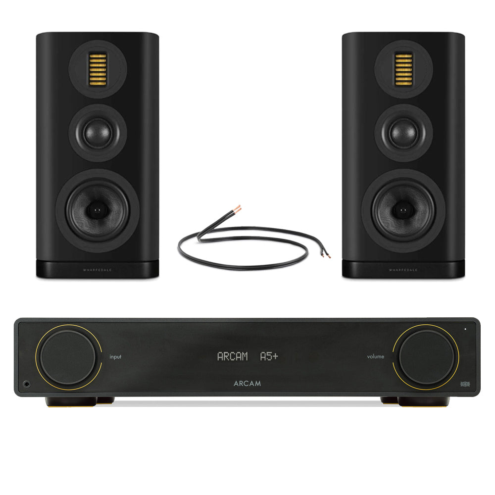 Arcam A5+ Integrated Amplifier with Wharfedale EVO 5.2 Bookshelf Speakers HiFi Bundle – Black