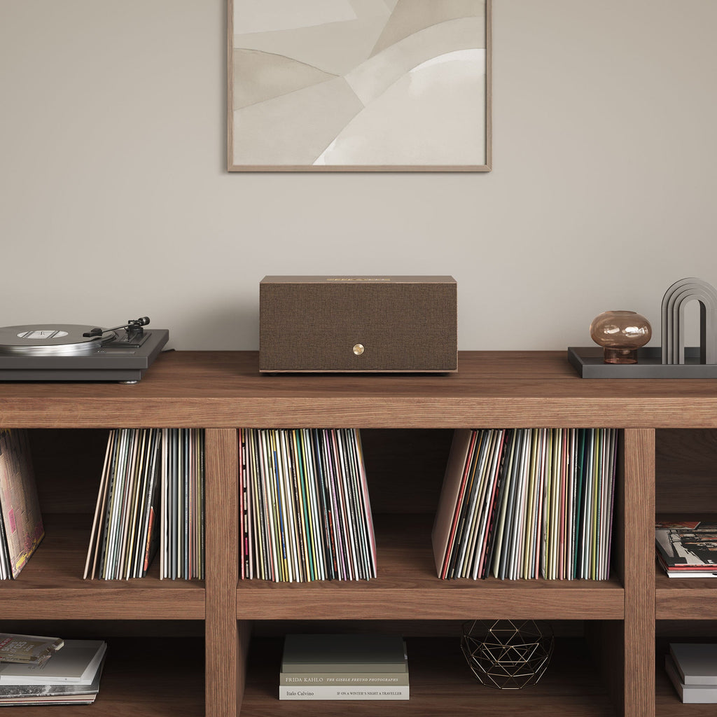 Crafted with precision, the C20 W’s cabinet blends form and function beautifully. Available in satin white, grey, black, or walnut veneer, it complements any home décor. The magnetic fabric grille can be easily removed to reveal a more contemporary aesthetic. Every detail reflects Audio Pro’s commitment to timeless, minimalist design.