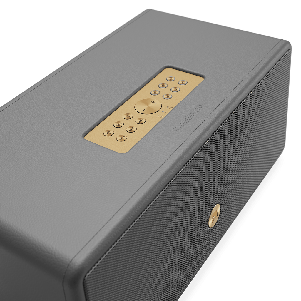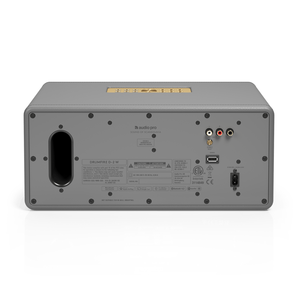 Audio Pro Drumfire D-2 W WiFi Wireless Multiroom Speaker in Grey – AirPlay 2 | Google Cast | Spotify Connect | HiFi Sound | Leather Finish