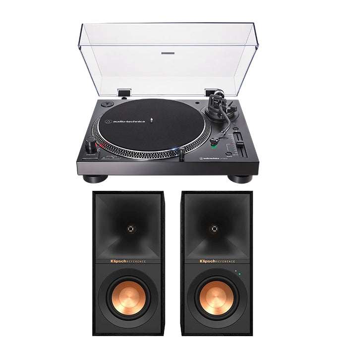 Audio-Technica AT-LP120XBT-USB Direct Drive Turntable + Klipsch R-40PM Powered Speakers Pair Black