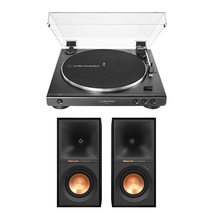 Audio-Technica AT-LP60X Fully Automatic Turntable + Klipsch R-40PM Powered Speakers Pair Black