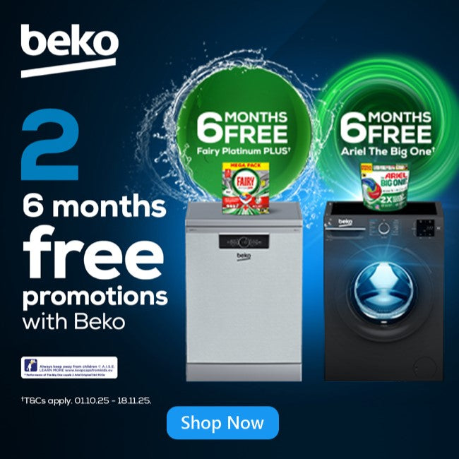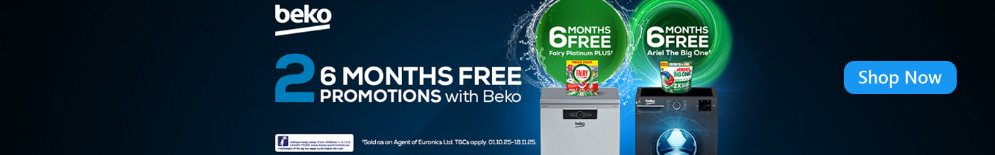 Purchase a qualifying Beko PowerIntense Dishwasher between 01/10/25 and 18/11/25 and claim 6 months worth of Fairy dishwasher tablets.