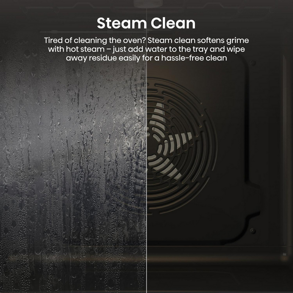 Steam Cleaning – Hot steam softens grease and grime, so wiping down the oven is quick and easy.