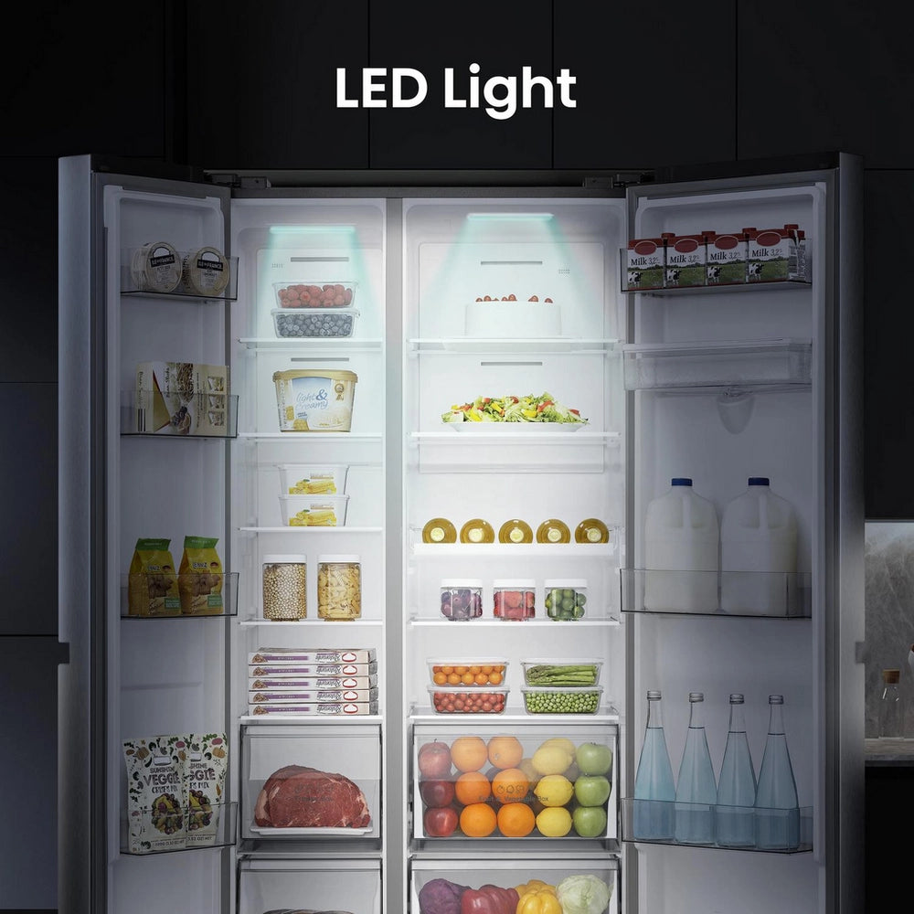 The inverter compressor adapts its cooling power to match the conditions inside, saving energy and running more quietly. Digital temperature sensors work alongside it, constantly monitoring and adjusting to maintain stability. And with soft LED lighting, the whole interior is bright without being harsh, while also saving on energy use.