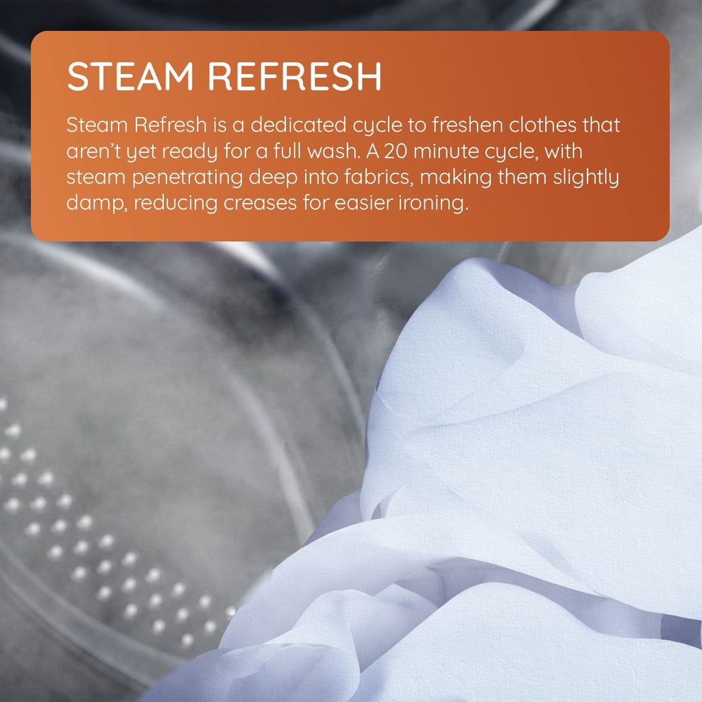 Steam Refresh – Freshens clothes with minimal water, reducing odors and wrinkles