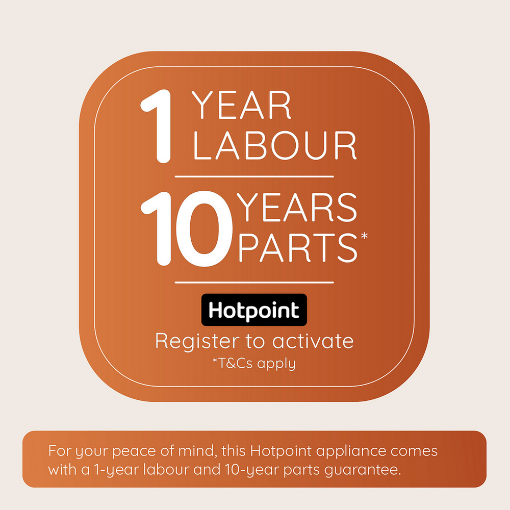 To activate this guarantee you MUST register the appliance at https://www.hotpoint.co.uk/register-my-appliance |