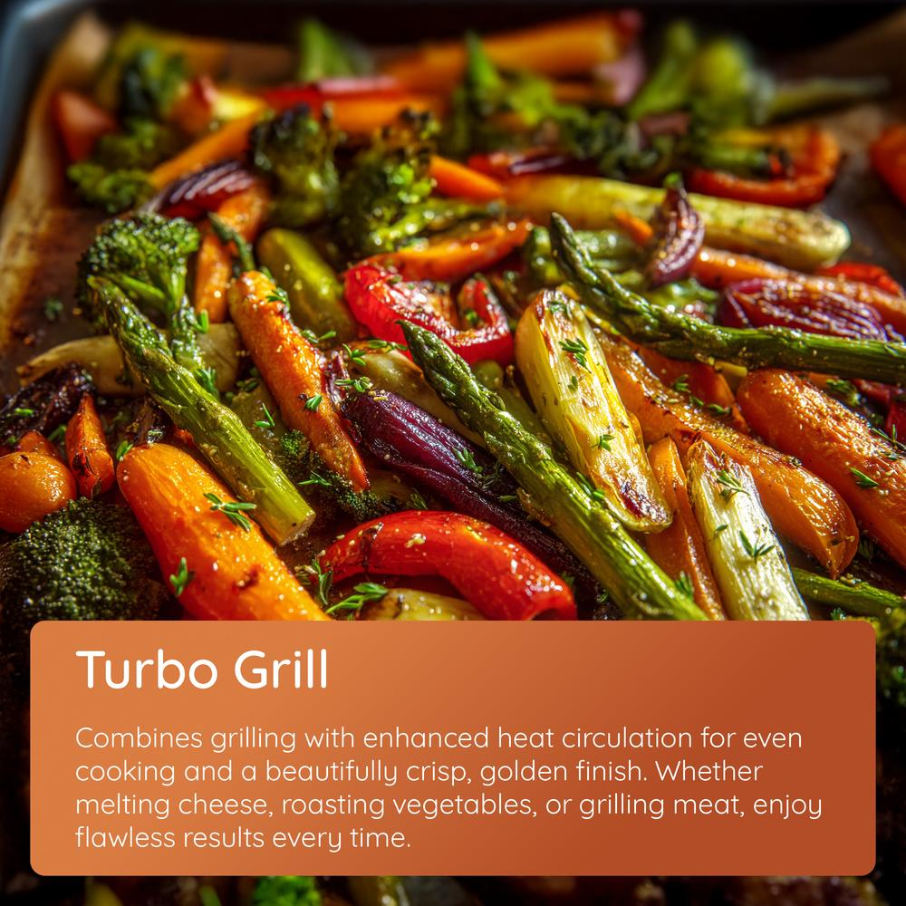 If you care about a golden, even finish, the Turbo Grill gives a crisp top and better circulation for browning. And when it’s time to check progress, the oven light helps you take a quick peek without opening the door and losing heat.