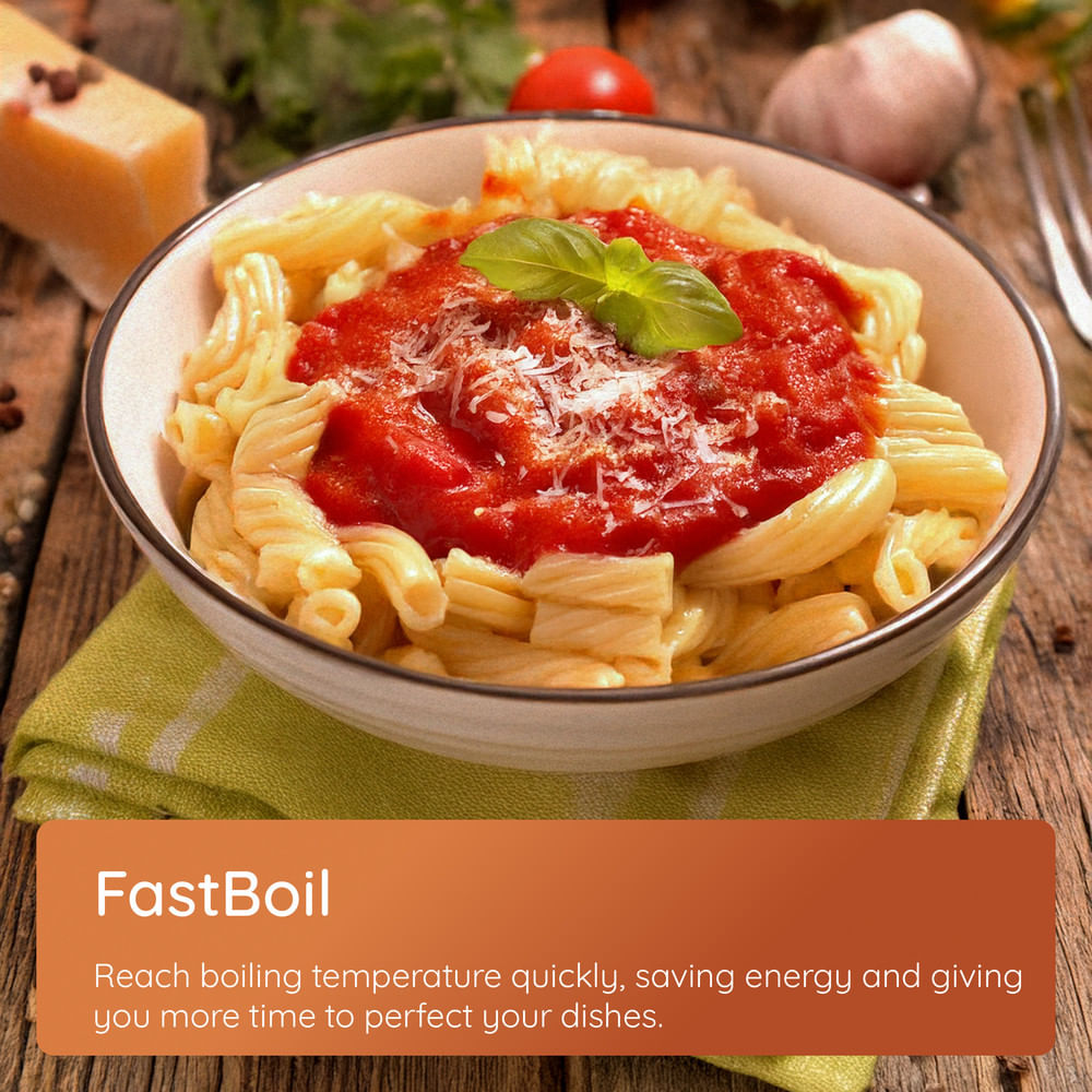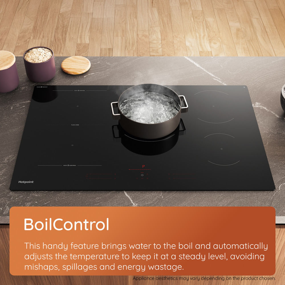 Water boiling over is another pain everyone knows too well. Hotpoint has added two features to fix that. FastBoil gets water bubbling in no time, saving you both time and energy. Once it’s boiling, BoilControl takes over, automatically lowering the temperature so it stays at the right level without spilling everywhere. No more messy hobs, no wasted energy, and no panicked rushes across the kitchen.