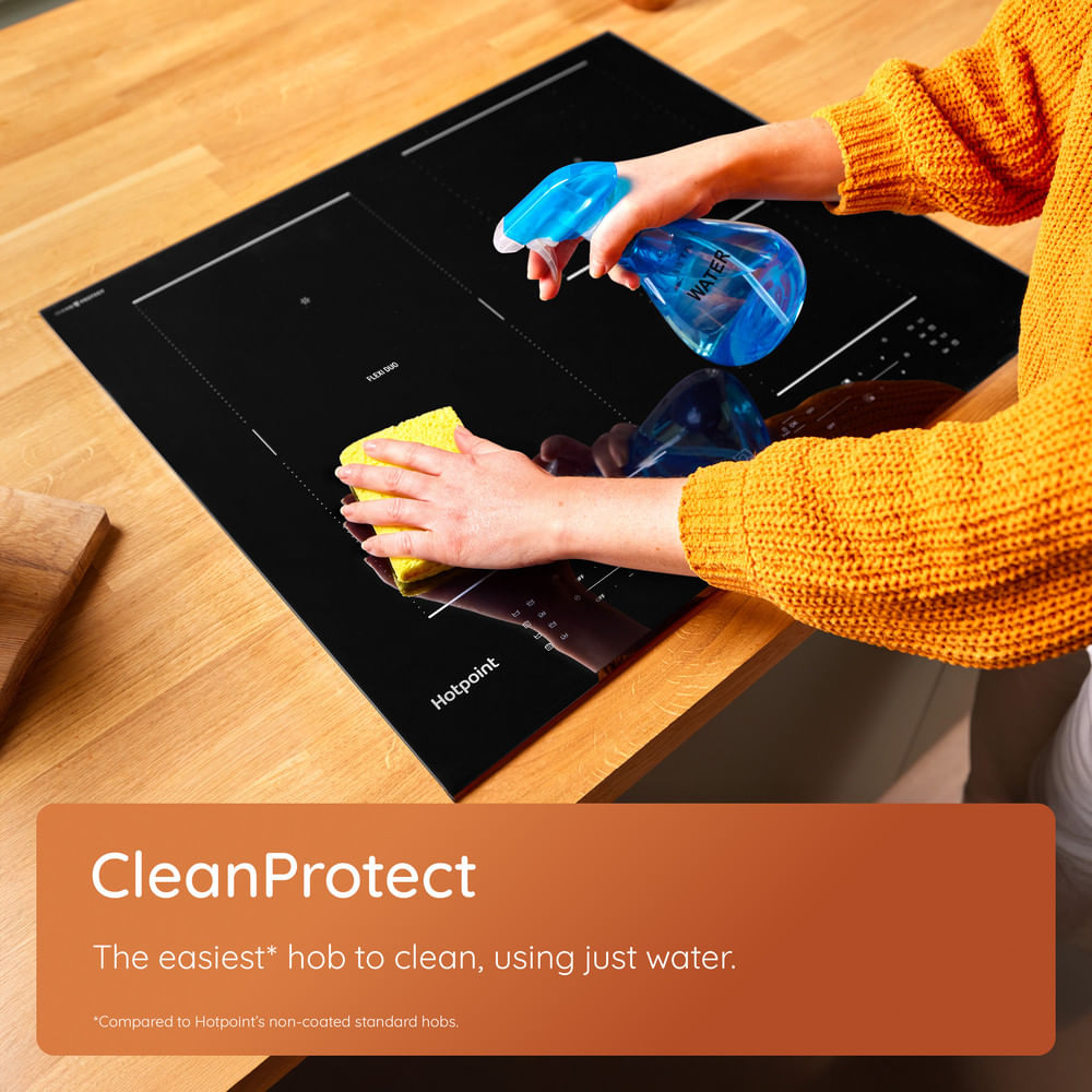 Cleaning is where this hob really earns its keep. The surface has a CleanProtect nano-coating that stops marks, halos, and scratches from building up. It’s five times more resistant than a standard hob, and the best part? Most of the time, you only need water to get it spotless again. That means no more harsh cleaning sprays, no endless scrubbing, and you could even save the equivalent of six bottles of detergent a year. It’s better for you, and better for the environment too.