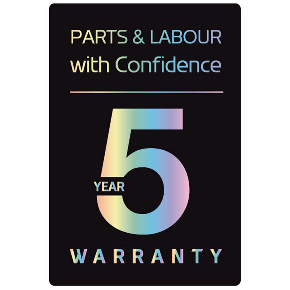 2 Year Guarantee with additional 3 Year Warranty (*Registration Required) |