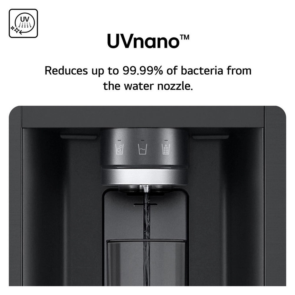 Enjoy chilled water and ice on demand thanks to the plumbed water and ice dispenser. UVnano™ technology works to eliminate up to 99.99% of bacteria in the water nozzle, helping ensure every glass tastes fresh and clean.