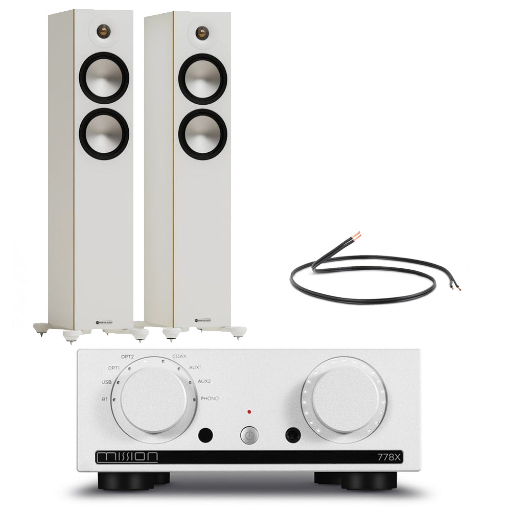 Mission 778X Integrated Amplifier Silver with Monitor Audio Bronze 300 7G Floorstanding Speakers White Pair HiFi Package, Mission, 778X, Integrated, Amplifier, Silver, with, Monitor, Audio, Bronze 300, 7G, Floorstanding, Speakers, White, Pair, HiFi, Package, 778XSV-BRONZE3007GWH