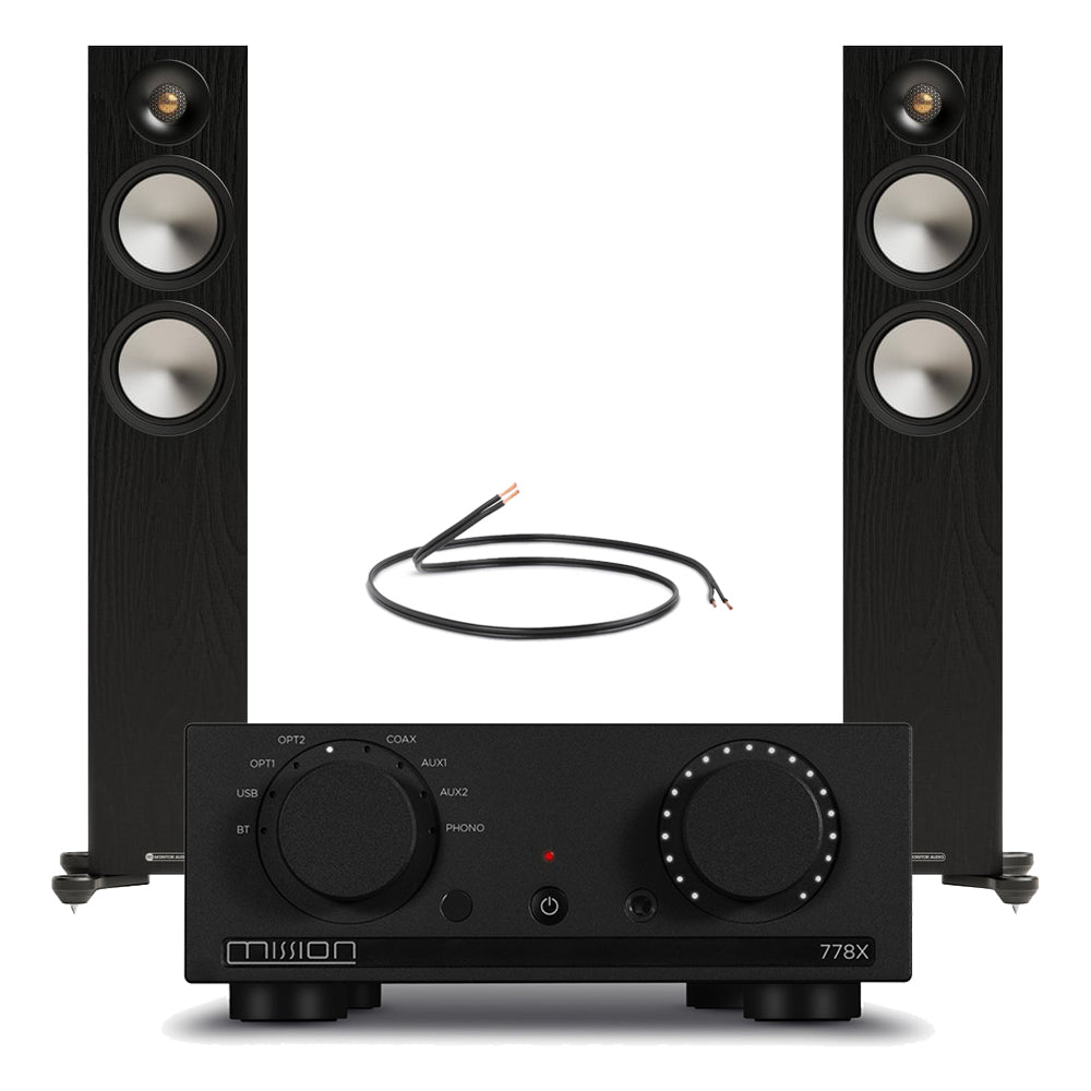 Mission 778X Integrated Amplifier with Monitor Audio Bronze 300 7G Floorstanding Speakers Pair HiFi Package - Black, 778XBK-BRONZE3007GBK