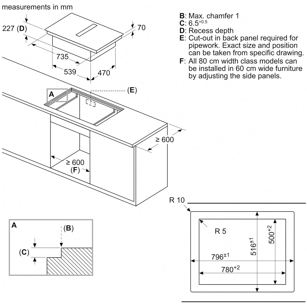 · Hob Aperture Needed: H 22.3 x W 75.0 x D 49.0 cm