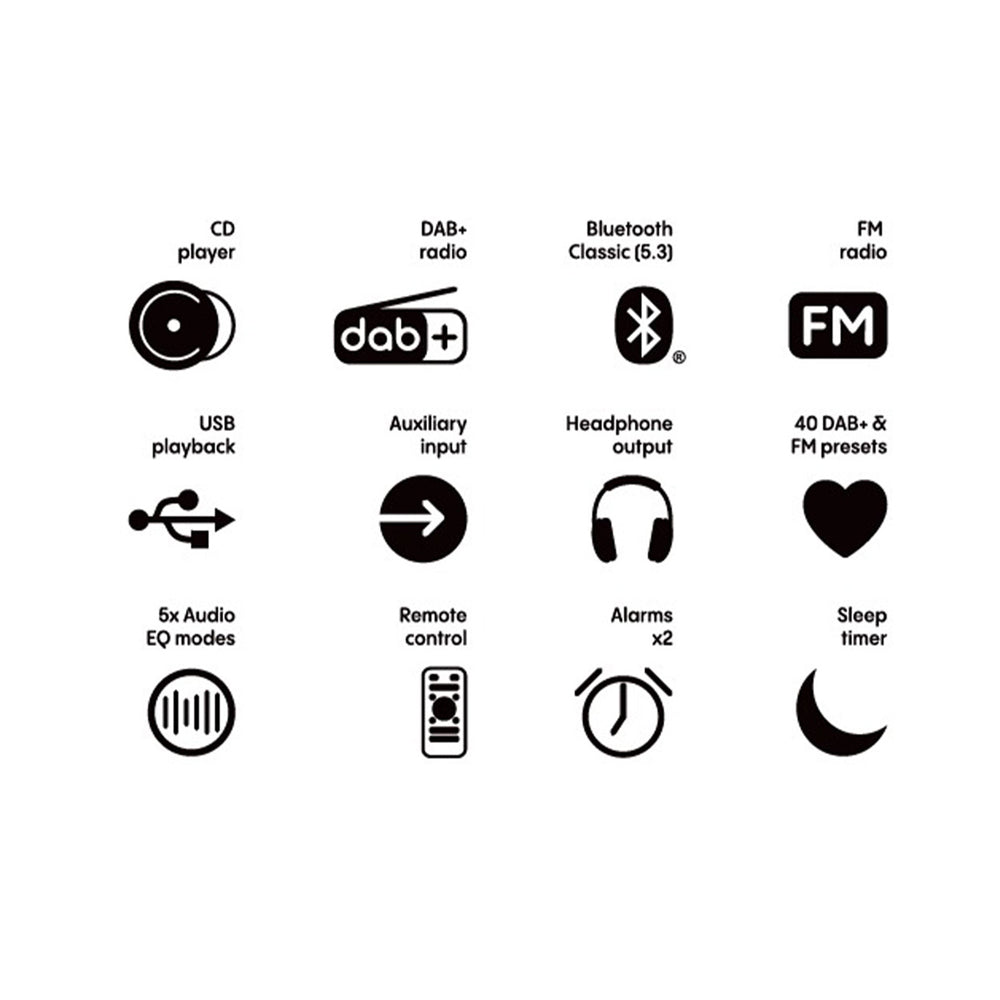 Enjoy all your favourite sources in one compact unit. Switch effortlessly between DAB+/FM radio, CD player, Bluetooth 5.3, USB, or AUX-in connections. You can even plug in your headphones for private listening – ideal for late-night sessions or quiet mornings.