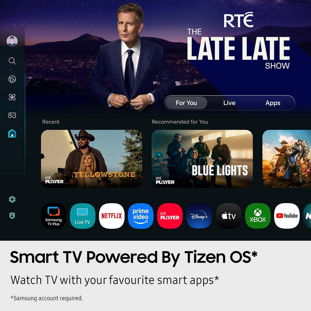 Discover a world of entertainment the moment you switch on. The built-in Tizen platform gives you quick access to Netflix, Disney+, YouTube, Xbox Cloud Gaming and more*, along with tailored recommendations that help you find something great to watch faster. You can also explore thousands of free channels and movies via Samsung TV Plus, with no subscriptions needed.