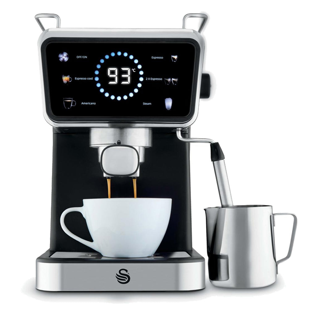 Swan SK22113BLK Espresso DIgital Coffee Machine with Built-in Milk Frother - Black, Swan SK22113BLK Espresso DIgital Coffee Machine with Built-in Milk Frother - BlackSwan SK22113BLK Core Pump Espresso Digital Coffee Machine, Digital Touch Controls, 5 Pre-Sets, 20 Bar Pressure, Built-in Milk Frother, 1.5 Litre Water Tank, Black, swan coffee machine, swan espresso mahcine, digital coffee machine