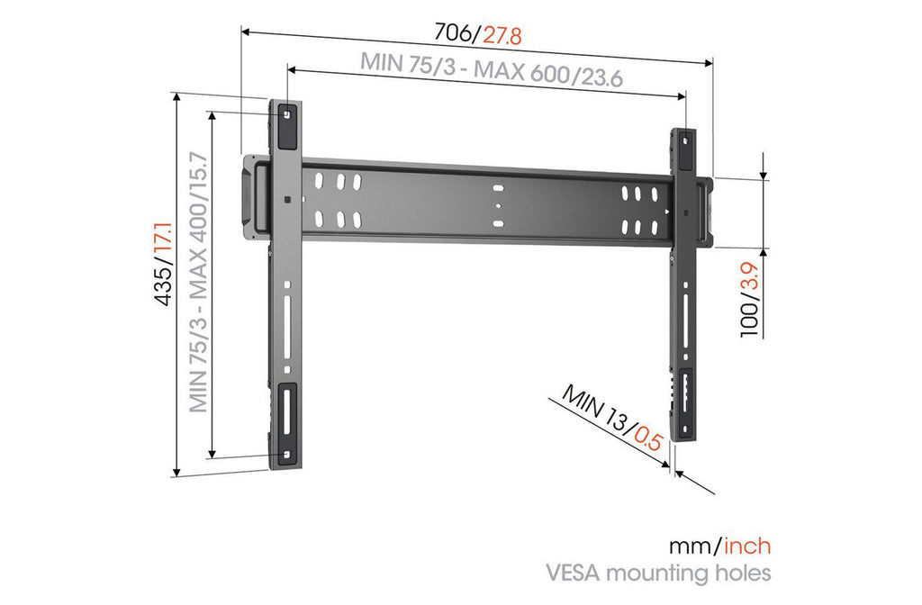 The Vogels Elite TVM 5705 Fixed TV Bracket is the ultimate solution for mounting your large premium TV securely and stylishly. Designed to support screens from 40 to 110 inches, it provides a sleek, ultra-slim fit just 13mm from the wall – giving your living space a modern, near-flush finish that perfectly complements OLED, QLED, and other high-end televisions.