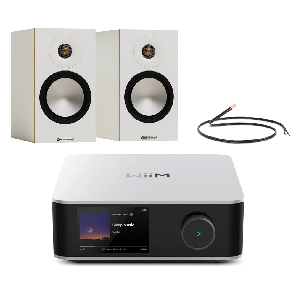 Upgrade your home audio with this WiiM Amp Ultra and Monitor Audio Bronze 50 7G Hi-Fi package. Designed for music lovers who want powerful sound without a complicated setup, this system combines a high-performance streaming amplifier with award-winning bookshelf speakers and quality speaker cable.